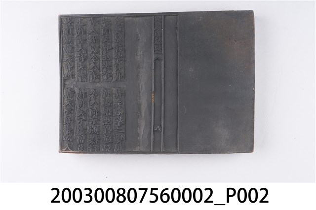 《大藏血盆經》,也稱為女人血盆經,在民間流傳甚廣,相傳婦女生育過多,會觸汙神佛,死後下地獄在血盆池中受苦,若生前延僧誦此經,則可消災錫福。本組雕版共四片,採陽刻,本件分別為第五、六頁。
