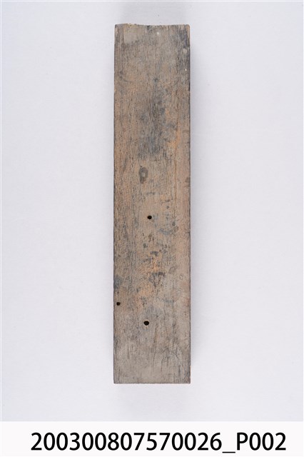 詩廟籤詩主要有「甲子籤詩」、「六十四卦籤詩」以及九九極數加籤王組成的「百數籤詩」三種組合,籤詩內容與組合類別沒有必然關聯。早期詩廟籤詩以木刻印版方式列印,最上方標示宮廟名稱,各籤詩註明籤號別,籤詩多以七言四句呈現,有的籤詩印版也列出刊刻籤詩者的姓名。本件為廣濟宮壬寅靈籤木刻印版,籤詩為「此物原來本是鐵,也能變化得黃金。口前口口無異心,且看前途得好口。」,莊氏治刊。