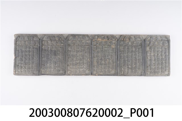 本件為六首籤詩印版,以一塊長方形薄木板雕刻而成,籤圖為圭形,籤詩頭刻有「配天宮」、「天上聖母」。籤詩以六十甲子作編號,分別是庚戌、庚申、庚辰、庚子、庚寅、庚午。每張籤詩印版有詩句內容、等次、捐獻者姓名。一套籤數量有36、60、100、120等等。籤詩普遍涵蓋人生面相的正負解釋,抽籤是民眾的一種心理諮商管道。