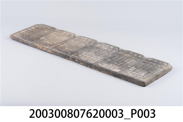 本件為六首籤詩印版,以一塊長方形薄木板雕刻而成,籤圖為圭形,籤詩頭刻有「配天宮」、「天上聖母」。籤詩以六十甲子作編號,分別是戊戌、戊申、戊午、戊辰、戊寅、戊子。每張籤詩印版有詩句內容、等次、捐獻者姓名。一套籤數量有36、60、100、120等等。籤詩普遍涵蓋人生面相的正負解釋,抽籤是民眾的一種心理諮商管道。