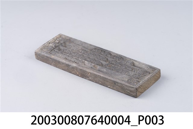 本件為配天宮籤詩印版,以一塊長方形薄木板雕刻而成,籤詩頭刻有「配天宮」,屬於東四道吾尊者之籤詩,吉凶等級為下中,內容「修來道果非尋常,行湍功圓待法王;玉磬一声清曉夢,任他明月入廡光。」弟子林奎敬刊謝。一套籤的數量有36、60、100、120等等,籤詩普遍涵蓋人生面相的正負解釋,藉由解籤人或求籤人的主客觀判斷,解惑尋求化解之道,是民眾的一種心理諮商管道。