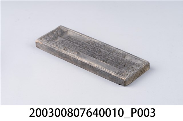 本件為配天宮籤詩印版,以一塊長方形薄木板雕刻而成,籤詩頭刻有「配天宮」,屬於東八布袋尊者之籤詩,吉凶等級為上中,內容「人生世上如雹影,衣食□□為順境;劝□妄念且消除,莫使袋时絻猛□。」弟子林奎敬刊謝。一套籤的數量有36、60、100、120等等,籤詩普遍涵蓋人生面相的正負解釋,藉由解籤人或求籤人的主客觀判斷,解惑尋求化解之道,是民眾的一種心理諮商管道。