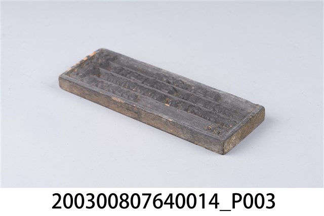 本件為配天宮籤詩印版,以一塊長方形薄木板雕刻而成,籤詩頭刻有「配天宮」,屬於西二力風尊者之籤詩,吉凶等級為上上,內容「凶星避舍吉星臨,只為平生積善深;錫汝清閑錫汝利,天公到底是平心。」弟子林奎敬刊謝。一套籤的數量有36、60、100、120等等,籤詩普遍涵蓋人生面相的正負解釋,藉由解籤人或求籤人的主客觀判斷,解惑尋求化解之道,是民眾的一種心理諮商管道。