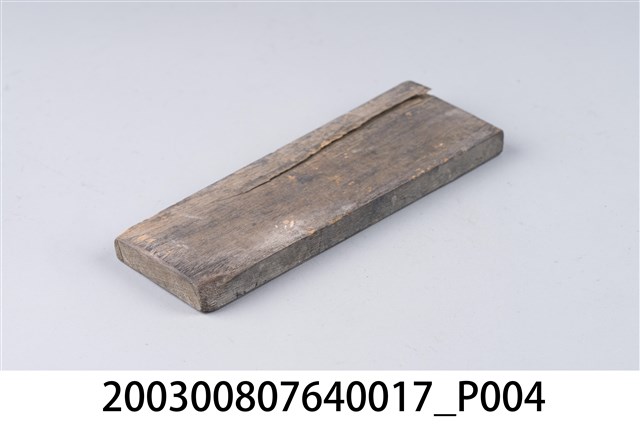 本件為配天宮籤詩印版,以一塊長方形薄木板雕刻而成,籤詩頭刻有「配天宮」,屬於東二佛陀难堪尊者之籤詩,吉凶等級為中下,內容「半生心事似浮雲,日日頻將四体勤;梅子鶴棲甘冷靜,蒲團竹杖伴斜□。」弟子林奎敬刊謝。一套籤的數量有36、60、100、120等等,籤詩普遍涵蓋人生面相的正負解釋,藉由解籤人或求籤人的主客觀判斷,解惑尋求化解之道,是民眾的一種心理諮商管道。