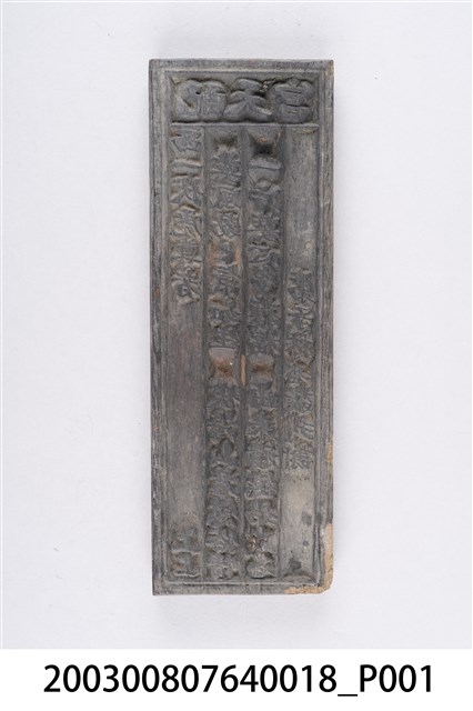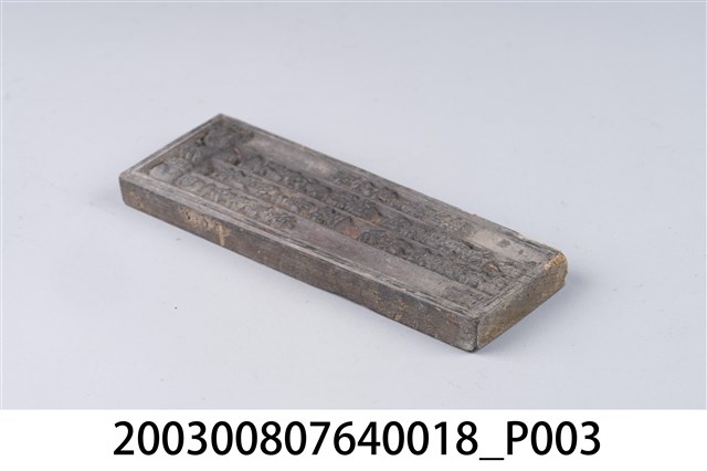 本件為配天宮籤詩印版,以一塊長方形薄木板雕刻而成,籤詩頭刻有「配天宮」,屬於西一伏虎尊者之籤詩,吉凶等級為上上,內容「英風勃□氣如生,伏淂山君慰俗情;一片婆心多獲福,由來積德始成□。」弟子林奎敬刊謝。一套籤的數量有36、60、100、120等等,籤詩普遍涵蓋人生面相的正負解釋,藉由解籤人或求籤人的主客觀判斷,解惑尋求化解之道,是民眾的一種心理諮商管道。