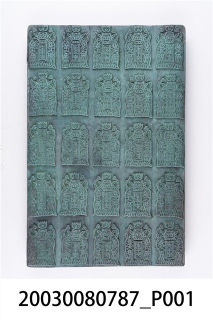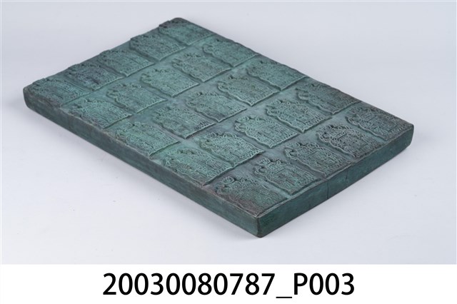 本件為求平安印版,木雕印版上有「求平安」字樣的色牌,長寬各5個色牌,計25個,使用於燈座。印版結合雕刻和印刷藝術,古代廣泛運用在刊印書籍,宗教民俗的版畫、符令、籤詩等印刷物上。燈座為竹骨紙糊的工藝品,代表神尊臨時降臨壇場或宮廟中,接受信徒敬備豐盛的供品祭拜與祈求消災賜福,常見有天公座、三界公座、七娘媽亭等。