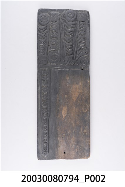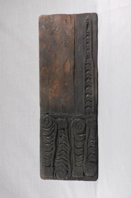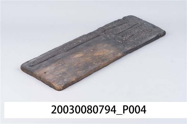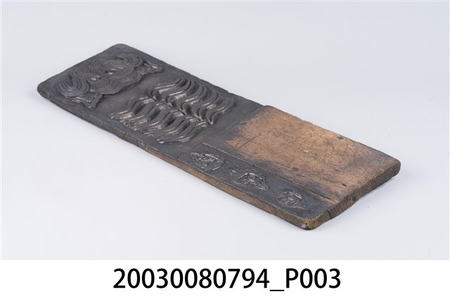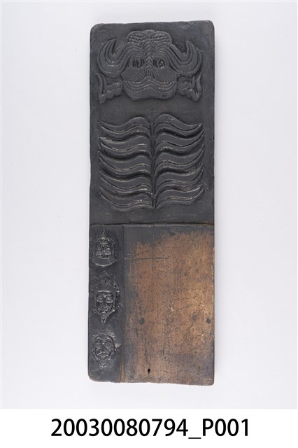 本件為虎雙面印版,為一塊長方形木板雕刻而成,一面為虎頭、虎斑紋,另有三顆人頭像。為一面虎斑紋和虎尾。民俗認為老虎兇猛,可驅邪辟煞。印版結合雕刻和印刷藝術,古代廣泛運用在刊印書籍,宗教民俗的版畫、符令、籤詩、疏文等印刷物上。