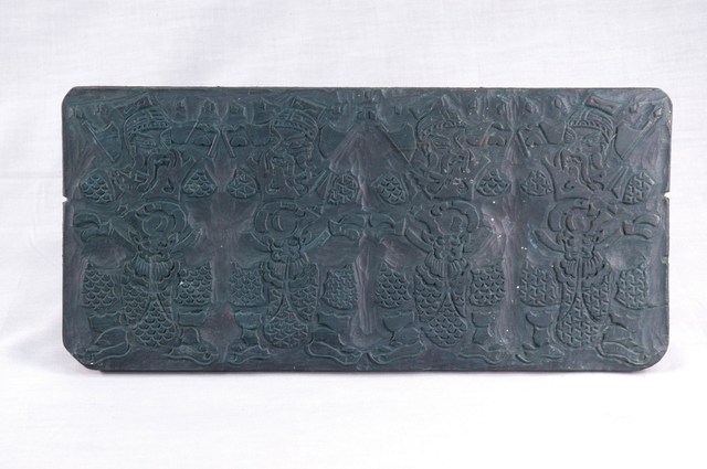 本件為門神雙面印版,由一塊薄方形木板雙面雕刻各兩對門神套版,依造型近似秦叔寶與尉遲恭,為民間最常見的門神。手持的兵器民間版本眾多,但大多出現秦叔寶手持一對金鐧而尉遲恭則持鐵鞭。印版結合雕刻和印刷藝術,古代廣泛運用在刊印書籍,宗教民俗的版畫、符令、籤詩、疏文等印刷物上。