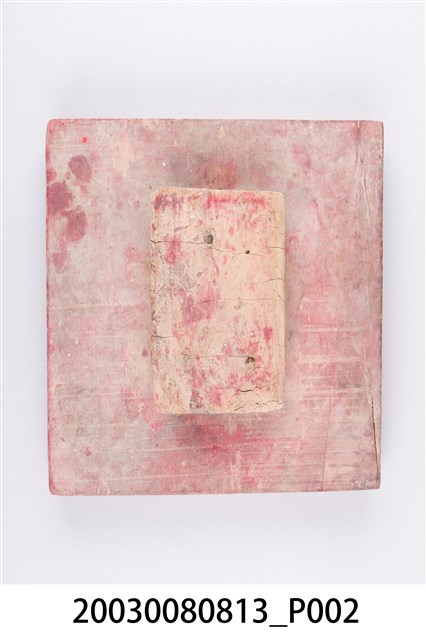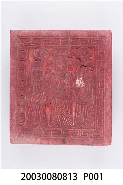 本件為財子壽印版,為一塊長方形木板雕刻而成。福仙上面有字刻「財子壽」,祿仙上面有字刻「祈求」,壽仙上面有字刻「平安」。福代表五福臨門,祿表示高官厚祿,壽則是長命百歲的意思。印版結合雕刻和印刷藝術,古代廣泛運用在刊印書籍,宗教民俗的版畫、符令、籤詩、疏文等印刷物上。