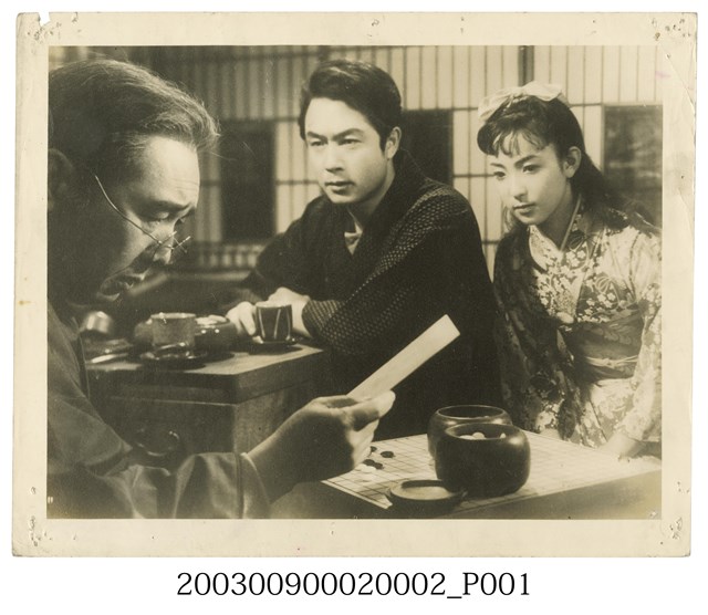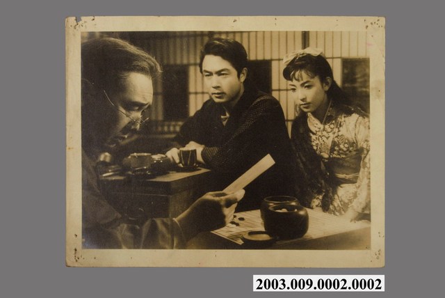 日本電影《電光流星空手道》黑白劇照,照片中間的年輕男子推測為日本男演員波島進,右側則是女主角浦里晴美。《電光流星空手道》是1956年(昭和31年)由日本東映電影公司攝製,津田不二夫執導, 高倉健、浦里晴美、山形勲、佐佐木孝丸等共同演出的黑白動作片,上映時先以《電光空手道》(電光空手打ち)打頭陣、一週後再上映原班人馬主演的《流星空手道》(流星空手打ち)。