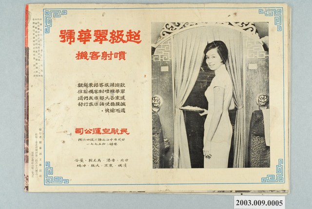 英國片《戰國春秋》(Khartoum)的電影特刊,印刷裝訂成冊,1967年由臺北市的銀幕語文雜誌社發行,每冊訂價新台幣三元。封面印有中英片名「戰國春秋、Khartoum」、Cinerama(新藝拉瑪體),以及該片劇照。封底則是「民航空運公司」的全頁廣告,包含「超級翠華號噴射客機」、「歡迎諸旅客搭乘超級翠華號噴射客機」等文案。