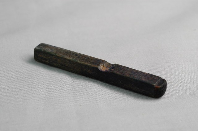 1.本物件為新竹國民大戲院之印章,長柱體,木製材質。該印章為單字印章,刻有「業」字樣,雕刻方式為陽刻,底部橡膠為橘色,有使用痕跡。