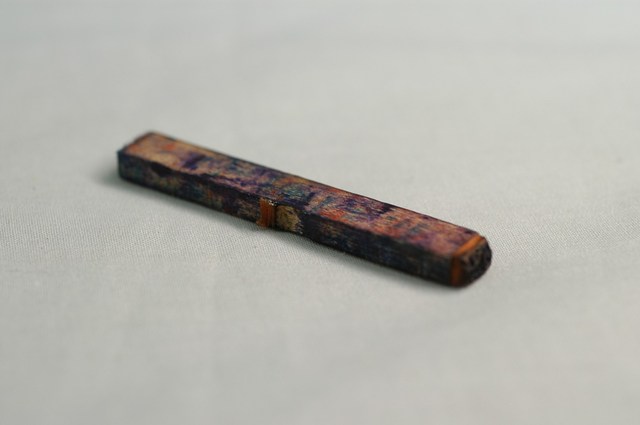 1.本物件為新竹國民戲院之印章,長方體狀,木製材質。該印章刻有「遲到」字樣,字體為直式排列,雕刻方式為陽刻,底部橡膠為橘色,有使用痕跡。