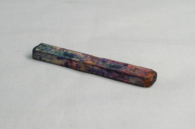 1.本物件為新竹國民戲院之印章,長方體狀,木製材質。該印章刻有「曠職」字樣,字體為直式排列,雕刻方式為陽刻,底部橡膠為橘色,有使用痕跡。