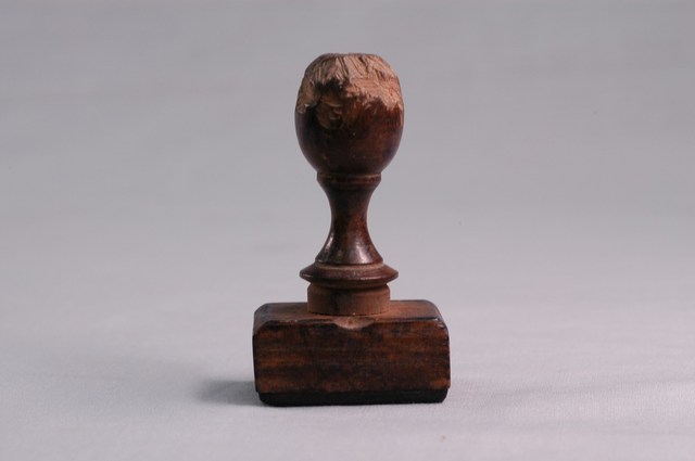1.本物件為新竹國民戲院之印章,底部為長方形圖案,木製材質。該印章上方有握柄,該柄有毀損痕跡。底部刻有五個區塊,區塊內刻有圖案,模糊未清。雕刻方式為陽刻,有使用痕跡。
