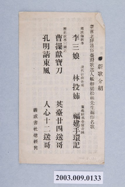 2003.009.0133 義成書社出版《新歌廖添丁》No.1