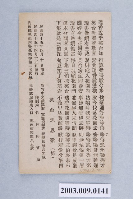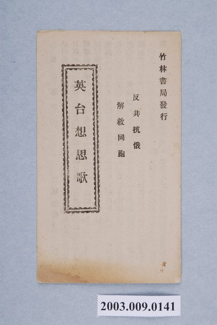 2003.009.0141 竹林書局出版《英台想思歌》