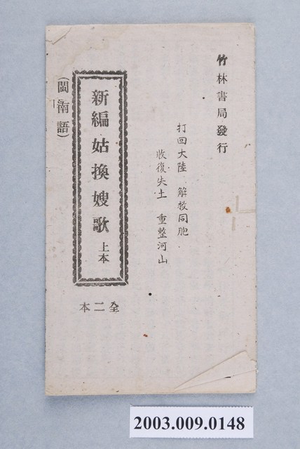 2003.009.0148 竹林書局出版《最新姑換嫂歌》