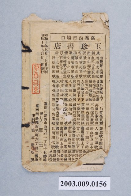 2003.009.0156 玉珍漢書部出版《城市之夜歌》