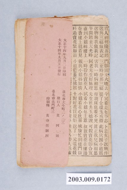 火燒樓歌的故事內容描述王三福受到劉府小姐好心贈與因而引發相思之症,三福透過花婆打聽發現劉小姐與陳解元已有婚約,但仍拜託花婆讓他混入劉府與小姐見面,但是小姐拒絕了三福。後得天候相助,三福病倒雨中得到劉小姐收留照顧,兩人日久生情,劉小姐的兄長得知此事,決心促成二人姻緣,於是在迎娶之日火燒樓閣營造妹妹以死假象並宣稱是陳解元所為。後三福榮登金榜高中,至朝廷時被陳解元發現真相狀告皇上,皇上愛才調停兩人紛爭,令陳解元榮歸再娶,整篇語言形式是使用閩南語。歌仔冊的由來是將傳統台灣戲曲藝術中的的「唸歌」以文字集結成冊印刷的出版品。