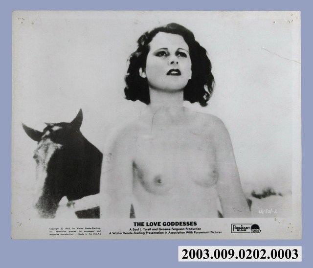索爾塗瑞(Saul J. Turell)導演之美國紀錄片《美人世界》(The Love Goddesses, 1965)的宣傳劇照,本件劇照上的女明星為梅.馬許(Mae Marsh, 1894-1968),是從默片時代就開始踏入電影圈的美國女明星,當年被視為默片傳奇女星瑪麗畢克馥(Mary Pickford)的接班人。曾與默片導演格里菲斯(D.W. Griffith)合作《一個國家的誕生》(The Birth of a Nation, 1915)等片,有聲片時代她也曾在《憤怒的葡萄》(The Grapes of Wrath, 1940)、 《沉默的男人》(The Quiet Man, 1952)等片中演出。