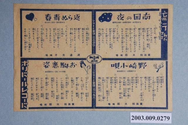 2003.009.0279 寶麗多〈南國之夜〉等歌詞單