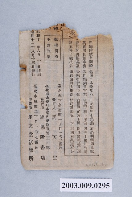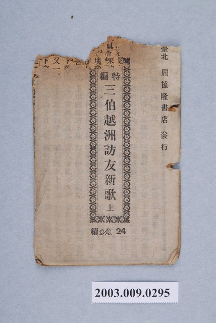 2003.009.0295 周協隆書店出版《三伯越洲訪友新歌》上