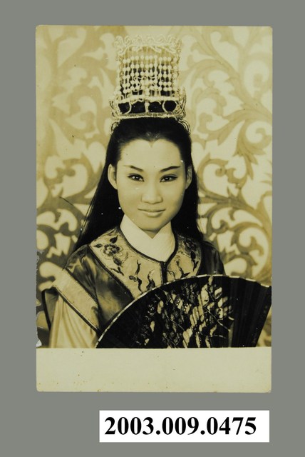 臺灣歌仔戲女演員扮小生的黑白劇照,身分待查。