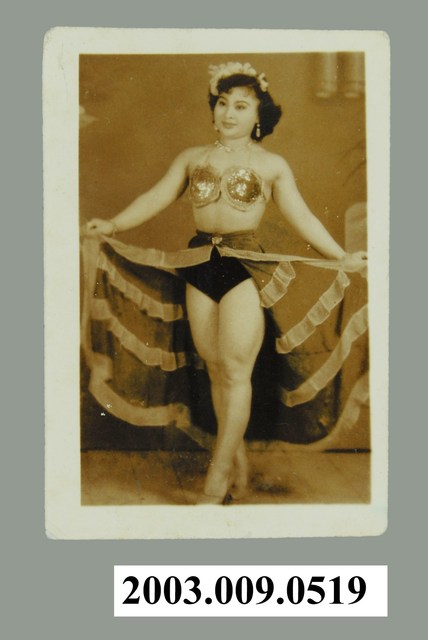 推測可能為雜技團演員海珠做歌舞表演打扮的黑白時裝照。