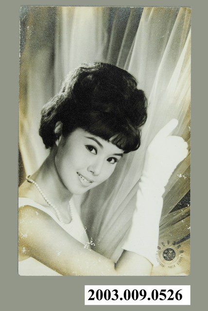 香港國語片影星張慧嫻的黑白時裝照,右下角有「國際攝影公司」商標字樣。