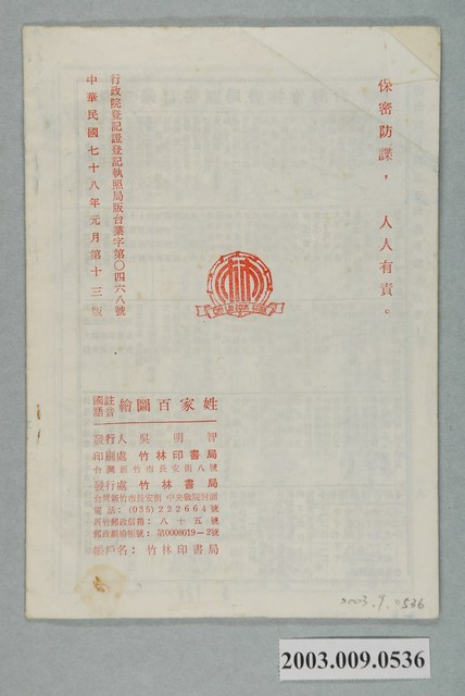 2003.009.0536 新竹竹林書局《繪圖百家姓》