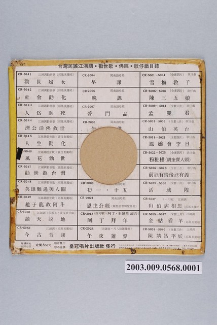 2003.009.0568 皇冠唱片出品唱片《勸世遊臺灣》