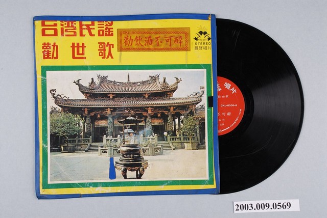 「鐘聲唱片公司」出品編號「CKL-8008」的33轉、十二吋塑膠唱片,主題為徐鳳順編作的「臺灣民謠勸世歌:勸飲酒不可醉」,1977年9月出版。鐘聲唱片廠位於三重,六○年代以翻版日、美唱片起家,本身有小工廠負責生產,這張唱片印上徐鳳順編作,實則只是掛名,演唱內容應與1969年龍鳳唱片知名作品,編號「LLP-6010」由謝財源、呂寶桂、張桂子演唱的長篇勸世歌謠「酒醉誤大事」,為41首四句連。(唱片內容與藏品編號「2003.009.0578」相同)