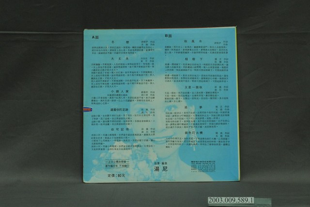 麗歌唱片公司出版編號「AK-1208」的十二吋塑膠唱片,出版於1979年12月,內容有國語歌曲12首,包括〈冬戀〉、〈大丈夫〉、〈小鎮人家〉、〈踏著你的足跡〉、〈你可記得〉、〈秋風冷〉、〈榕樹下〉、〈又是一個秋〉、〈追夢〉、〈銀色打火機〉等。