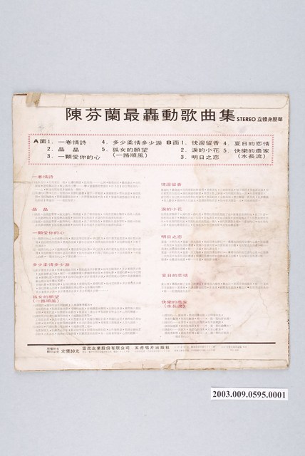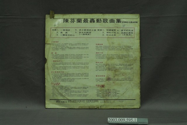 本張唱片有副本1份(館藏登錄號2003.009.0594)。