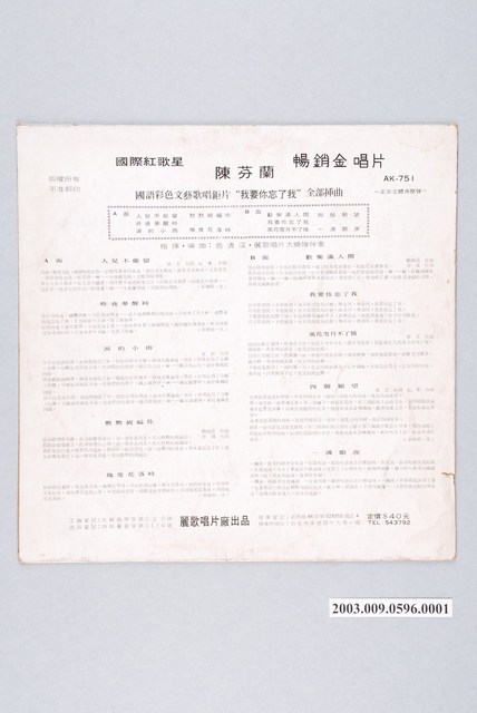 2003.009.0596 麗歌唱片公司出品華語歌曲專輯《陳芬蘭之歌》