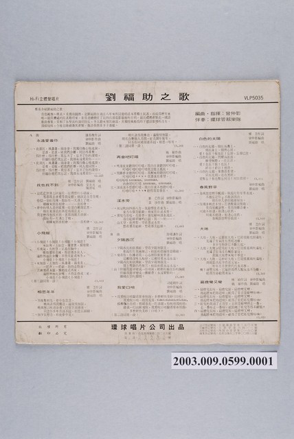 2003.009.0599.0001 環球唱片公司出品華語流行歌曲專輯《劉福助之歌》唱片封套