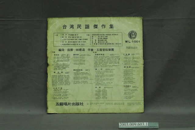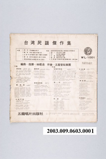 2003.009.0603 五龍唱片公司出品劉福助與金玫演唱臺語歌曲專輯《臺灣民謠傑作集:思雙枝》
