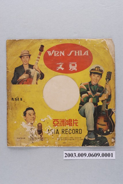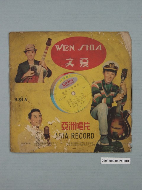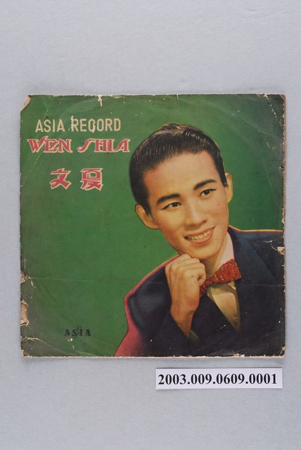 文夏台語歌曲專輯唱片封套,正反面印有套色影印之文夏彩色照片。為亞洲唱片公司出版之文夏專輯,綠色背景、背面三張照片,亞洲唱片自1960年以來就採用套色照片的方式製作彩色唱片封套,在製作成本高昂的當時,只有唱片銷售保證的文夏專輯才有這樣的唱片封套,其他歌星都只有黑白影印相片挾帶流傳,足證當年文夏歌壇地位之崇高,於是臺灣社會普遍識得文夏模樣。