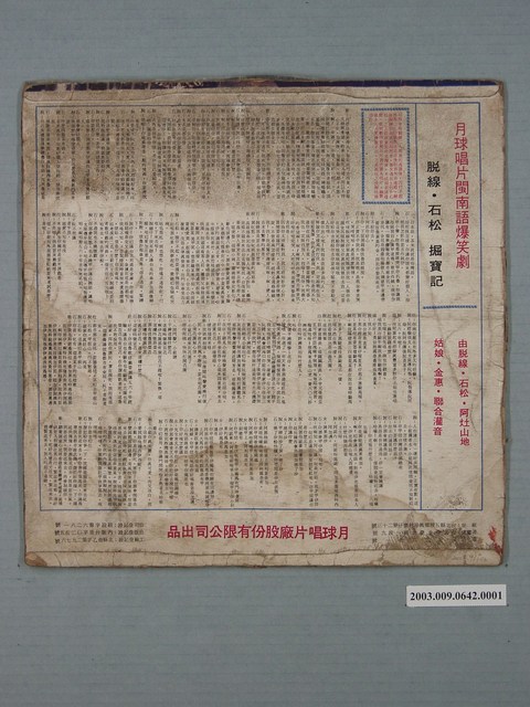 2003.009.0642 月球唱片公司出品臺語歌唱喜劇專輯《臺語滑稽幽默歌劇:邱罔舍拼脫線第3集-脫線、石松掘寶記》