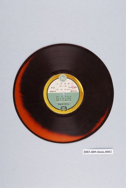 「中廣唱片公司」出品編號「SANL-2004」的10吋塑膠唱片,由惠美唱片承製,內容為「臺灣歌謠比賽指定曲示範歌唱:光復二十週年紀年歌」。歌曲內容包括〈青春嶺〉、〈白牡丹〉、〈夜半路燈〉、〈望你早歸〉。〈月夜愁〉、〈農村曲〉、〈日日春〉、〈思想枝〉。