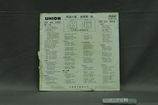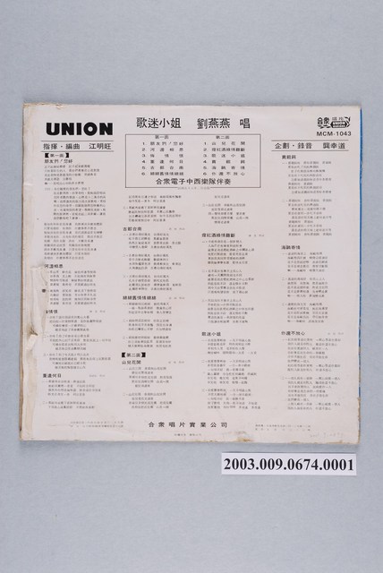 2003.009.0674.0001 合眾唱片公司出版編號「MFM-3001」歌曲專輯《懷念的閩南語歌曲》唱片封套