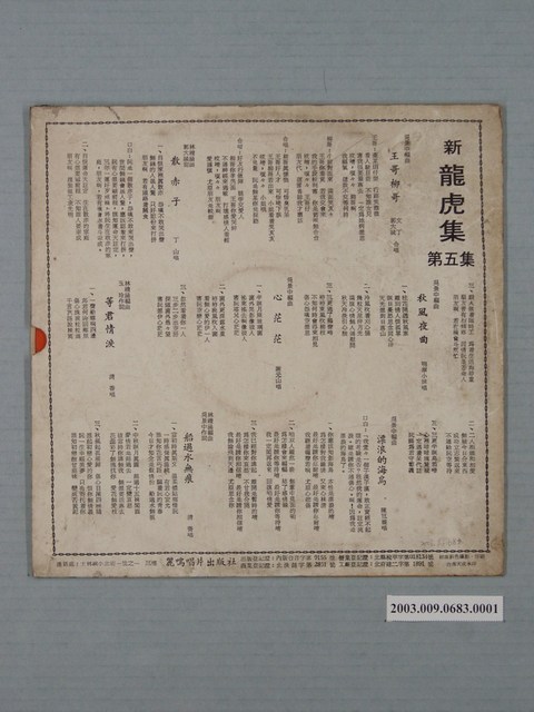 麗鳴唱片公司出品編號「LF-005」郭大誠、文丁等演唱歌曲專輯《新龍虎集第五集:等君情淚》