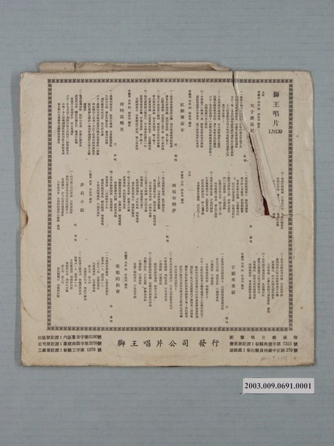 2003.009.0691.0002 獅王唱片公司出品編號「LN-139」一帆、黃秋田等演唱歌曲合集《太空歌唱集》10吋塑膠唱片