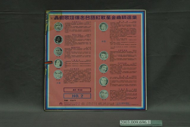 麗歌唱片公司出版編號「AK-952」臺語歌曲專輯《轟動歌壇懷念臺語紅歌星金曲精選集第2集》