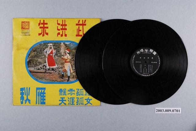 唱片封套與內容不符。計有1張封套、2張唱盤。 唱片封套為黎明文化事業出版,12吋塑膠立體聲錄音唱片,標題為「朱洪武」。1971年臺視播出臺語連續劇「朱洪武」,作曲為當時在臺視擔任特約作曲的曾仲影。 唱盤為2張12吋塑膠唱片,分別為新黎明唱片公司發行編號「BLM-1003」的《臺灣民謠第一集》臺語老歌唱片,及國際唱片公司出品編號「KL-47」的「聖誕快樂」。