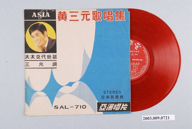 唱片封套與內容不符。 封套:亞洲唱片公司出品編號「SAL-710」臺語歌曲專輯《黃三元歌唱集:太太交代的話》唱片封套,唱片:金馬唱片出品編號「KM-001」臺語流行歌曲專輯《最新臺語流行歌集:電影『歌星淚』插曲》10吋塑膠唱片。