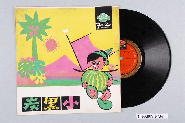 「四海出版社」出品十二吋塑膠唱片,內容為「兒童世界第二集:小黑炭的故事」。