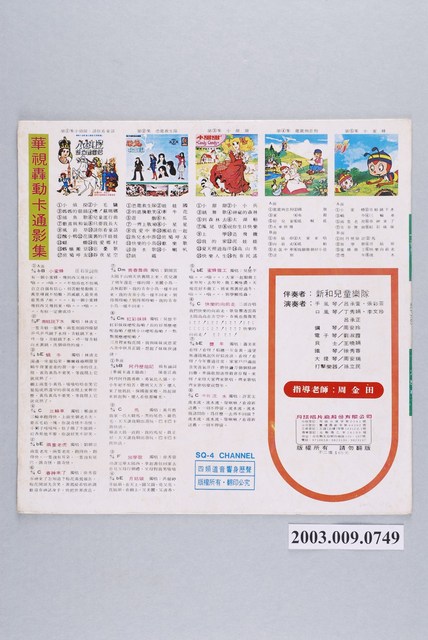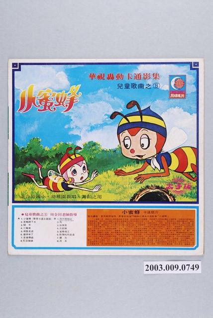「月球唱片」出品編號「MEV-9165」唱片封套,內容為「兒童歌曲(五)」,由周金田指揮。收錄〈小蜜蜂〉、〈青蛙跳下水〉、〈三輪車〉、〈兩隻老虎〉。〈阿丹歷險記〉(華視卡通影集主題曲)、〈馬〉、〈放學歌〉、〈快樂向前走〉等兒童歌曲。本片負責音樂製作與指揮者周金田,是萬華新和國小音樂教師,同時也帶領兒童合唱團,為華視演唱許多卡通主題曲,他也就是日本卡通〈小甜甜〉的作曲者。