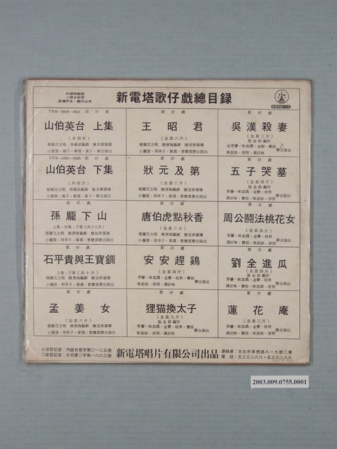 新電塔唱片公司出品臺語說唱故事專輯《臺灣民間故事江湖調:雪梅教子》